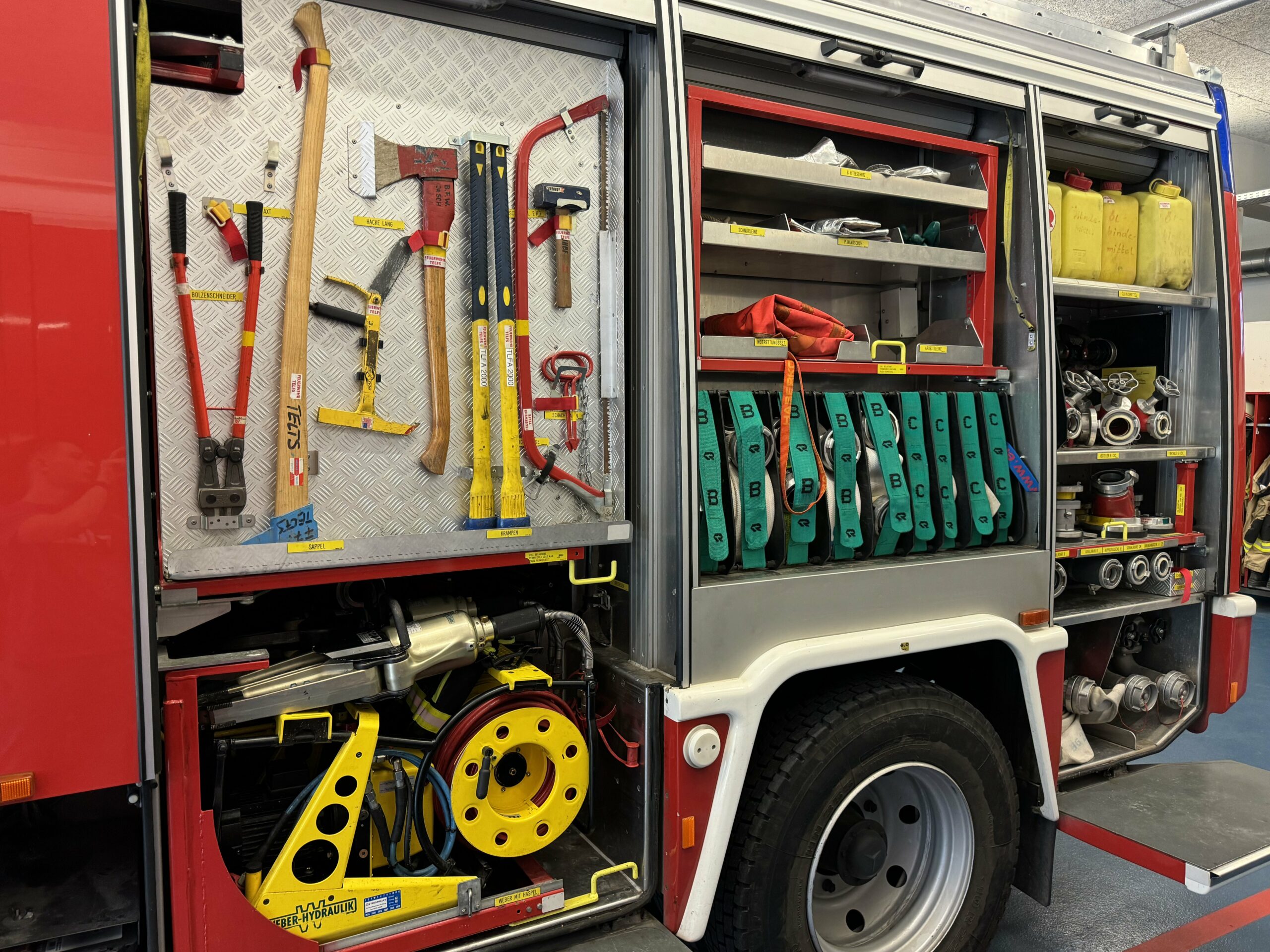 Der Fuhrpark der Feuerwehr Telfs inkl. der SLG Mösern besteht mittlerweile aus einer Vielzahl an Fahrzeugen, die mit individueller Beladung ausgestattet sind. Dabei stechen besonders die drei Sonderfahrzeuge SRF, DLK und GGF heraus. Das Einsatzspektrum der Feuerwehr Telfs reicht über die Gemeindegrenzen hinaus, weshalb eine hohe Frequenz an ganz unterschiedlicher Einsätze mit den Fahrzeugen bewältigt wird.